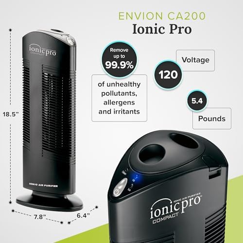 IONIC PURIFICATION: This room air purifier sanitizes and removes 99.9% of airborne allergens, irritants, and pollutants in your whole home - plus it destroys cold & flu viruses, mold spores, and staph and strep bacteria. SILENT OPERATION: This quality air cleaner destroys airborne germs and odors without any ambient noise. Easy to use in any room in the house, including the baby's nursery without disturbing their sleep. COMPACT DESIGN: The sophisticated standing tower design is small and compact enough to make it portable and easy to move from room to room. The One-Touch operation with push-button ease saves time and effort. 3X CLEAN: Purifies the air in small to medium size rooms (up to 200 square feet) up to three times in one hour. Perfect for the home, bedroom, or office. It has 2 settings - one for high power and one for low power. EASY-TO-CLEAN FOREVER FILTER: This machine does not require a filter replacement, which saves on money. Simply lift the removable cap, pull up on the collections blades' handle to slide it out & wipe clean with a soft cloth. It's that easy!