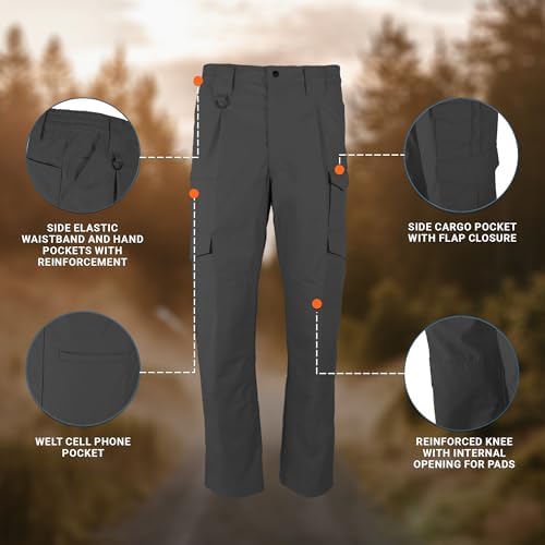 OUR BEST SELLING PANT: The Lightweight Tactical Pant is our bestselling pant for a reason; Made of a DWR coated breathable cotton ripstop and polyester blend, it won’t weigh you down and is essential for an active lifestyle 10 POCKETS: Reinforced hand pockets, a magazine pocket, a welt cell phone pocket, and 2 seat reinforcement pockets with internal wallet pockets, provide plenty of space to carry your work gear STAIN RESISTANT: Teflon fabric protector repels stains and liquids, and tactical pants are water resistant for reliable performance in the most demanding working conditions SMART DESIGN: There are extra large belt loops, and seat and knees are reinforced for extra durability, while still allowing the addition of knee pads. Pants are NTOA member tested and approved RELAXED FIT: These men’s cargo pants have a side elastic waistband that sits comfortably at the waist. The pants stay relaxed through the hip and thigh and are straight through the leg