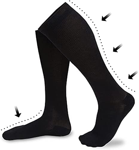 HELPS IMPROVE CIRCULATION – The Compression Socks for circulation keep blood flowing in your legs, helping improve the circulation of oxygenated blood. Mild compression socks 8-15 mmHg rating. REDUCES FATIGUE AND SWELLING – Compression support socks can help you get through a hard workday by eliminating fatigue and energizing your legs, whether you’re sitting, standing, or playing sports. GREAT FOR RECOVERY – Great knee-high, long compression socks for post surgery recovery, athletic, running, cycling, pregnancy, nurses, sports, travel. Ideal compression socks for medical and non-medical use. IDEAL FOR EVERYDAY USE – Unisex soft compression socks for women and men, suitable for all type of situations, for anyone stuck in a sedentary position, preventative health, or for performance athletes. FABRIC: 71% Rayon from Bamboo, 23% Nylon, 5% Lycra, 1% Spandex