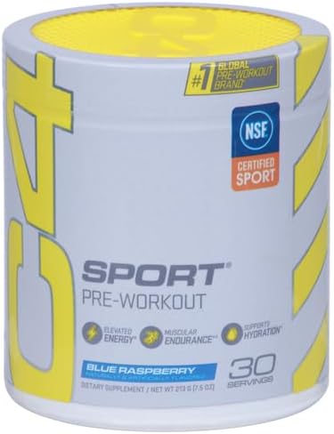 C4 PRE WORKOUT POWDER FOR MEN & WOMEN - America's Number 1 Selling Pre-Workout Brand has been trusted since 2011 with over 2 billion servings sold* Optimized for exercise to beat your personal best and crush your goals BUILD MUSCLE & STRENGTH - Formulated with a nitrogen-containing compound designed to build lean muscle mass, maximize performance, and increase strength in all athletes - from pro to everyday INCREASE REP COUNT - Formulated with CarnoSyn Beta-Alanine, a premium clinically studied beta-alanine, which has been studied to support muscular endurance and fight fatigue and may cause a harmless tingling sensation TESTED & TRUSTED BY THIRD PARTIES - Proudly NSF Certified for Sport, an independent certification program recognized by the United States Anti-Doping Agency (USADA), Major League Baseball, the National Hockey League and the Canadian Football League DELICIOUS FLAVORS UNLIKE ANYTHING ON THE MARKET - Blue Raspberry, Fruit Punch, and Watermelon. Take one serving (1 scoop) of C4 Sport, mixed with 6-8 fl. oz. of water 20 - 30 minutes before training
