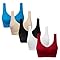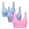 Multicoloured-3 pack;Perfect for yoga, dance and other low-impact moves Removable bra period pads-The inside of the cup has a small opening that contains a removable pad. Removable pads are easy to put in & take out. The material of the sport bra is super comfortable and breathable;Super soft and stretchy.The stretchy straps do not dig into shoulders. Double layer knitted construction -Seamless compression bra designed for low impact activities. The straps are wide and supportive as well Built for Low-Impact activity & all-day comfort;Next-to-skin without the squeeze;It's a stretchy bra you can easily stretch it.