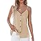 Stylish & Adjustable Design:Flowy chiffon-like tank top with a chic button-down V-neck and adjustable spaghetti straps. Perfect for layering under blazers or wearing solo. Loose fit flatters all body types. (Fabric: 95% Polyester + 5% Spandex) Breathable Summer Comfort:Ultra-lightweight fabric keeps you cool on hot days. Stretchy material moves with you – ideal for beach vacations, spring brunches, or casual errands. Machine-washable for easy care. Beach-to-Office Versatility:Doubles as a beach cover-up or polished work top. Pair with linen pants for business casual outfits or high-waisted shorts for trendy 2025 looks. Year-Round Wardrobe Staple:Transition effortlessly between seasons: Layer with cardigans in spring or wear as a sleeveless summer camisole. Perfect under sheer dresses or with jeans for date nights. Travel-Ready Practicality:Wrinkle-resistant fabric packs neatly for vacations. Neutral colors match any wardrobe – from teens’ casual tops to women’s dressy office shirts.