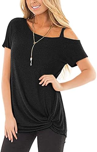TEMOFON Women Cold Shoulder Tops: Summer Short Sleeve Shirts Casual Twist Knot Blouse T-Shirt S-2XL