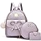 I IHAYNER Girls Bowknot 3-Pieces Fahsion Leather Backpack Backpack Purse for Women Rucksack for Ladies Shoulder Bag