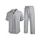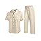 Linen Material: Men beach 2 piece outfits are made of linen blend fabric. Soft, breathable and easy to the touch, stay cooler, relaxed fit on a hot summer day Vintage Classic Set: With the cooperation of classic and stylish design, cuban collar shirts and loose long pants, inspired by the retro 1960s pool parties and beach wedding days, to make this matching linen button down shirts and pants are on-trend Casual Linen 2 Piece Outfits: The short sleeve button down shirts with camp collar, a chest pockt and a untucked design complete your vacation look. The linen beach pants features elastic drawsring waist, two front pockets and open bottoms, provides enough waist and leg room to move more freely Occasions: The guayabera shirts summer set perfect for daily wear, sun beach, wedding, tropical theme, camp, cruise, havana, vacation, birthday party, vacation or any casual wear. Match sunglasses to create a fashionable leisure style, or pair with sandals and a sun hat for beachwear Warm Tips: Hand or machine wash below 40℃. Please refer to our size chart carefully before ordering, the men's linen set is designed to be relaxed for comfortable all-day wear, if you prefer a more fitted style, please consider sizing down for the best fit