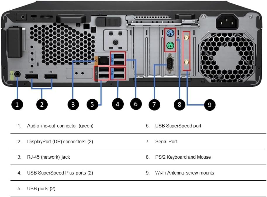 Processor: Intel Quad-Core i3-10100 (3.6GHz - 4.3GHz, 6MB Cache) Hard Drive: 256GB SSD M.2 NVMe (OS Drive) + 500GB HDD 7200rpm (Data Drive Installed in Removable Drive Enclosure | CRU DP25 SATA 6G) | RAM: 8GB DDR4-3200 | Wireless: Intel Wi-Fi 6 + Bluetooth 5.1 OS: Microsoft Windows 11 Pro 64-Bit (with Windows 10 Pro 64-Bit Downgrade) | Graphics: Intel UHD Graphics 630 | Supports up to 2 Monitors via 2 x DisplayPort | HP_USB Business Slim Wired SmartCard CCID Keyboard | HP_USB Wired Mouse Front: 1x Headphone/Microphone Combo; DVD-Writer; Removable Drive Enclosure | CRU DP25 SATA 6G (500GB); 1x USB Type-C; 4x USB Type-A | Rear: 1x DisplayPort 1.4; 1x RJ-45(LAN); 6x USB Type-A; Serial Port; PS/2 Keyboard Port; PS/2 Mouse Port; Audio Line-out Connector Memory & Hard Drive Upgrades | View product description for complete details and notes