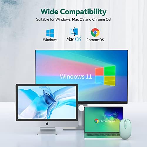 【Special Mint Green Mouse】This is an ideal choice if you need a colorful and cute mouse. Special mint green color and compact size makes it the best mouse for kids and people with small hands. 【Portable Small Mouse】 Only 3.94*2.28*1.52 inches, the usb mouse is designed for small to medium sized hands to achieve optimal fit and comfort. Portable design makes it easy to store in a bag for traveling. 【Soft Click Quiet Mouse】 Responsive buttons and scroll wheel provide very soft click with less noise, no more disturbing others and bring you comfortable using experience. 【Easy to Use Laptop Mouse】 TECKNET travel mouse comes with a nano receiver (stored IN the mouse). 2.4GHz wireless technology ensures reliable connectivity up to 49ft. 3 adjustable DPI levels (1600/1200/800) to meet your different needs. Only need 1xAA battery (NOT included) to support up to 15 months battery life. 【Universal Compatibility】The optical mouse works perfectly for Chrome OS, Linux, Android, Vista, Windows11/10/8/7/2003/2000/XP, Mac OS X10.4 or later, etc. Fits for Chromebook, MacBook, Laptop, desktop, PC, etc. (NOTE: Only connects to devices with USB A port). 【Life Time Support】If you do not like our product or service, please feel free to contact us. Each TECKNET product provides 36 months warranty (registered only).