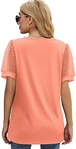 Aokosor Womens Summer Tops V Neck T Shirts Swiss Dot Puff Sleeve Tops Loose Casual Tshirts