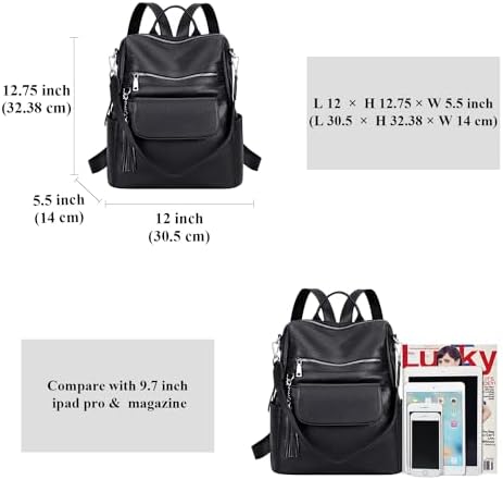 ALTOSY Genuine Leather Backpack Purse for Women Large Convertible Shoulder bag Ladies Crossdody Bag with Tassel(S115 Black)