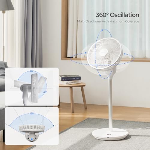 10 Versatile Modes: Choose from Turbo Wind, 3D Wind, Up/Down Rotation, and more 4 Wind Modes & More: Basic, Natural, Sleep, and Eco, provide ranges of wind level settings that alternate, maintain, and pause Easy Assembly: With fully detachable parts, assembly is swift, storage is compact, and cleaning is simple 100% Adjustable: Rotate circulator 360 degrees for full home coverage; adjust height for floor or countertop use Included Accessories: Comes with a detachable power cord (adapter type), remote control, and product manual