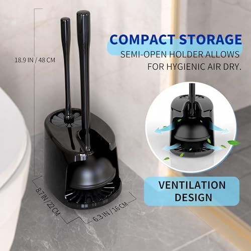 2 in 1: MR.SIGA toilet plunger and bowl brush combo contains a high efficient toilet brush, a powerful toilet plunger and a two-compartment steady holder. Convenient space saving stylish design and sanitary storage keep your bathroom neat, clean and well organized, it's a must-have accessory for your toilet cleaning. HEAVY DUTY TOILET PLUNGER: Built with commercial grade rubber suction cup which provides maximum plunging power for clearing tough clogs of toilet bowl, shower drains and sinks. Ergonomic handle features a secure and comfortable grip, makes your plunging more effectively, it's great for commercial and residential use. HIGH EFFICIENT TOILET BOWL BRUSH: Durable bristles are not easy to get deformed, they are economical and practical, the dense nylon bristles offers thorough and deep cleaning of under rim area and those hard to reach corners. Water easily drips off bristles into steady holder, brings you a refreshing cleaning experience. CONVENIENT STORAGE - Compact space saving design keeps your toilet brush hidden and provides a convenient storage. Ideal for residential, commercial, and industrial applications. MR.SIGA toilet brush and plunger set is available in black and white, its neutral color will complement any bathroom styles. Measures 6.3 x 8.7 x 18.9 inch. REPLACEABLE BRUSH HEAD: The plunger and brush set is made of durable materials to withstand frequent use and provide effective cleaning. For ordering replacement brush head, please refer to ASIN B08YRRDKDQ. MR.SIGA's mission: Make your housework easier, and make the world cleaner.