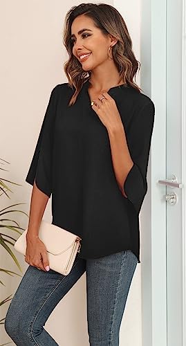 Size: Small(US 4-6), Medium(US 8-10), Large(US 12-14), X-Large(US 16-18), XX-Large(US 20-22), Please check your measurements to make sure the item fits before ordering. Fabric: Our blouses for women are made from great chiffon material, 100% Polyester. lightweight, soft, comfortable, and breathable to wear. You won't feel hot and dry when you put on this tops. Features: Casual ladies chiffon blouse, fashion v-neck tshirt, half ruffle split sleeve, 3/4 sleeve tops, chiffon shirts loose fit, very breathable and cool material. Occasions: The casual dressy blouse is perfect for wearing with leggings, skinny jeans, pants, skirts. Women's summer chiffon blouse is appropriate for casual, party, shopping, work, vacation, wedding, home, sleepwear, church, beach, and other occasions. Note: Due to computer image resolution and monitor settings, The color of the cute chiffon blouse may vary slightly depending on the website. If you have any questions about this product, please feel free to contact us. We will contact you within 24 hours to provide you with better solutions.Thank you for your understanding!