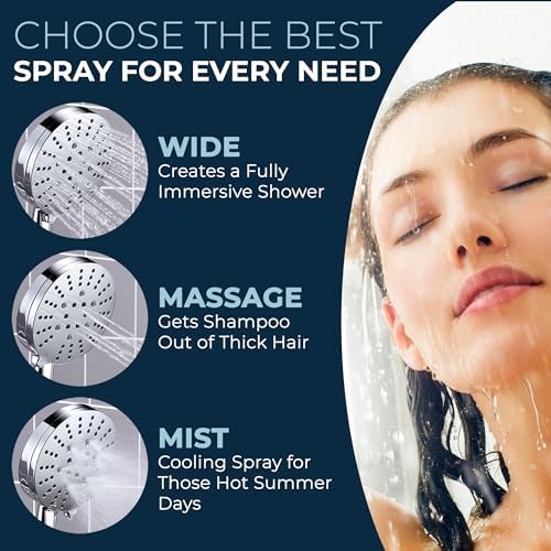 BUILT TO LAST A LIFETIME Unlike cheap plastic shower heads that break and leak, HammerHead Showers are ALL METAL and reinforced with COMMERCIAL-GRADE FINISHES that never flake or rust. Backed by a Limited LIFETIME WARRANTY. HOTEL CALIBER LUXURY AT HOME Immerse yourself in warm, relaxing water with the big 8 INCH RAIN SHOWER HEAD while enjoying 3 SPRAY OPTIONS on multi-function shower head with handheld sprayer – WIDE SPRAY, MASSAGE, or MIST. CHOOSE YOUR FAVORITE SHOWER SPRAYER on this luxury shower head with a solid brass 3-WAY DIVERTER, you can SMOOTHLY SWITCH between each shower head or run BOTH at the SAME TIME with maximum flow. EXTEND YOUR REACH Nowhere is off limits with our 6ft long metal hose – INTERLOCKING COILS give you maximum flexibility and reach. STAY SAFE with a SILICONE INNER TUBING, ensuring a much cleaner rinse than typical PVC tubing. INSTALL IN MINUTES No plumbing experience needed for installing our metal shower head! Read our EASY-TO-FOLLOW INSTRUCTIONS, use the included thread tape, screw onto your existing shower arm, and install in max 10 min.