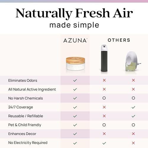 Powerful Odor Eliminator for Home & Beyond: Say goodbye to stale, stuffy air! Azuna Fresh odor eliminator for home uses the natural power of Australian Tea Tree Oil to neutralize odors at their source, tackling tough smells from food, smoke, pets, and more. A Strong room deodorizer odor eliminator that naturally removes unwanted smells and keeps your home smelling clean. Long-Lasting Room Freshener for Home: Enjoy continuous freshness for up to 60-90 days with Azuna's long lasting formula keeping your space smelling clean without the need for constant replacements. Just refill the jar with fresh gel when needed for a sustainable, reusable odor absorber solution. Ideal solution for those seeking room fresheners for home long lasting, delivering a natural and continuous freshness that keeps odors away. Non-Toxic & Pet-Friendly Air Freshener: Unlike artificial sprays, Azuna is a non-toxic air freshener for home, making it safe for families and pets. Whether you're looking for a bathroom air freshener odor eliminator or a dog odor eliminator for home, Azuna provides a gentle yet effective solution without harmful chemicals. Azuna’s gel air freshener for home provide a natural and effective way to eliminate odors, using the power of tea tree oil to keep your space smelling fresh. How does it work? Azuna doesn't mask with scent, it makes your air smell like air again. Azuna is a low concentrate tea tree oil gel that releases particles into the air through evaporative diffusion rather than through droplets like in a high concentrate diffuser. Azuna neutralizes odors in the air of the room which it is placed in. Plant-based, Safe & Manufactured in the USA: It is also Non-Toxic, Phthalate-Free, Cruelty-free, Biodegradable, Vegan, and has NO parabens, NO phosphates, NO formaldehyde, NO synthetic dyes, NO ammonia, or NO chlorine bleach. Azuna can be used as a natural pet odor eliminator for home, effectively neutralizing smells and keeping your space fresh without harsh chemicals.