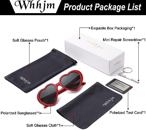 ?PRODUCT SIZE: Lens Width: 50mm, Frame Height: 54mm, Nose Bridge: 15mm, Frame Width: 128mm, Temple Length: 126mm, Net Weight: 22g. ?FASHION CLASSIC HEART STYLE: These stylish polarized heart frame sunglasses are unique design with a memorable fashion. Heart lens add retro and classic style with various colors, easy to match with different styles of outfit. They are the perfect choice for your child daily wear or used as high fashion accessories for festival party, retro themed cosplay costume, travelling, taking photos, Halloween, Christmas. ?PREMIUM MATERIAL: These WHHJM polarized sunglasses are made of high-quality materials, the frames are super light but very strong. These weights are only 22g, so your kids will feel very comfortable and no pressure on your nose. HD polarized UV400 scratch-resistant lens with anti-glare coating, delicate sturdy metal frame, integrated nose pads, solid stainless steel metal hinges, exquisite temples, all these details ensure long lasting wear and comfort! ?POLARIZED LENS PROTECT YOUR EYES: These polarized sunglasses can block 100% harmful UVA & UVB Rays, delivering a superior visual experience and glare protection while maintaining color integrity, all these features will protect your child eyes and return they to a world of true color. ?QUALITY AND SERVICE: Our QC team will check each pair of glasses carefully before delivery. If you have any dissatisfaction, just contact our WHHJM Customer Service Team, they will help you in 12 hours. There is no risk to try!