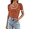 Size Guide: S=US 4-6, M=US 8-10, L=US 12-14, XL=US 16-18. TIPS: Please refer to the size chart before purchase! If in-between sizes, go down one. Made with premium quality fabrics, the tops provide both comfort and durability. T-shirts for women features simple short sleeve, cute cropped tops, fashion contrast color, elegant square neck, soft ribbed knit texture, sexy slim fit. Featuring ribbed texture and contrast color, these tops add a fashionable touch to any outfit. The chic design can make you more fashion and dressy. This color block shirt is the great staple piece for every ladies/girls closet! With multiple different styling options, you can pairing this with jeans, skirt or shorts along with a sneakers, sandals or heels for a casual, but trendy look! Suitable for casual everyday, working, home, office, party, clubbing, dating, yoga, outdoor. Ideal tops in spring, summer and fall. You can also wear this tops under a cardigan or a sweater in a cold winter. Wash Instruction: Hand/Machine washable with cold water recommended, do not bleach, iron in low, hang or line to dry.