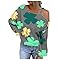 Womens St. Patrick's Day Shirt Long Sleeve Strape Off-Shoulder Tops Saint Patricks Day Clover Print T Shirt Blouse