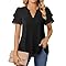 FASHIONABLE COMMUTE DRESSING - You can directly pair the women's short sleeve work blouses with jeans, straight pants, trousers, or leather skirts, or tuck it into bottoms for a taller and slimmer look, accessorizing with high heels, stylish handbags, necklaces, bracelets, etc., ideal for office work. You can also layer it with a blazer or cardigan and wear it with boots. Recommended occasions: office, work, business, school teaching, interviews, etc ELEGANT EVERYDAY DRESSING - In your daily relaxed state, you can pair this women summer top with comfortable dresses, jeans, shorts, wide-leg pants, etc., matched with sandals, flats, or sneakers for a wonderful day. Recommended occasions: casual, vacation, beach, picnic, gatherings, evening, parties, wedding, dates, weekends, shopping, afternoon tea, etc EXQUISITE PETAL PUFF SLEEVE - Fashionably hot-selling petal sleeve features an irregular multi-layer design, and the shoulder's pleated craftsmanship presents a more three-dimensional sleeve shape, giving the sleeve a unique look with a hint of puff sleeve charm, enhancing the overall style of the dressy tops for women and adding liveliness and delicacy, emitting strong visual impact and allure. The lightweight and breathable properties make it particularly suitable for summer wear CLASSIC HENLEY V NECK AND BACK PLEAT DETAIL - The classic cute V neck blouse for women is suitable for both work and daily wear. The back pleat design not only adding depth and breaking monotony, but also increasing the blouse's inclusivity and reducing constraint, offering a relaxed feel. The combination of fashionable lines and flowing pleats perfectly shapes the body's curves, versatile yet stylish SOFT AND EASY CARE DOUBLE-LAYER FABRIC - Inner layer crafted from stretchy opaque knit fabric - 95% Polyester, 5% Spandex; Outer layer made of semi-transparent chiffon fabric - 100% Polyester. The double layered chiffon blouses for women feature vertical stripe texture, exuding a sense of sophistication. Its soft nature offers a comfortable, cool, and flattering wearing experience, and its wrinkle-resistant, shape-retaining, and durable advantages makes it easy to care for and store