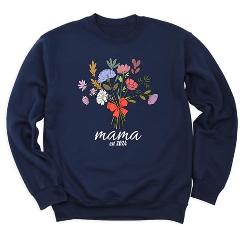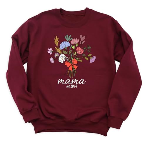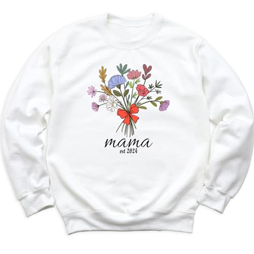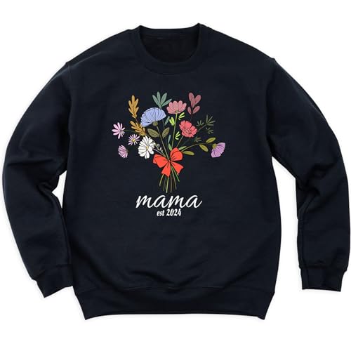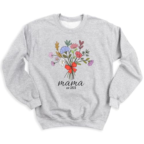 Personalized Mama Sweatshirt, Flower Bouquet Theme Mom Sweatshirt, Customizable Year of Motherhood, Long Sleeve Pullover Sweater, Gift for Mother's Day Gift for Moms