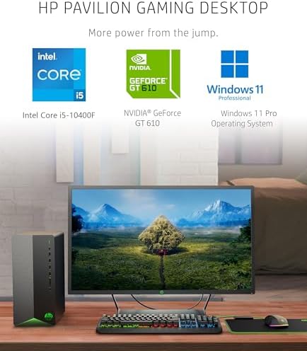 Processor: Intel Core i5-10400F Processor @ 2.90GHz (6 Cores, 12 Threads, 12M Cache, up to 4.30 GHz). Graphics: GeForce GT 610 2GB Graphics. High Speed RAM and Storage: 32GB DDR4 SDRAM Memory will let you smoothly run multiple applications and browser tabs all at once; 1TB M.2 PCIe NVMe Solid State Drive will provide fast startup, data transfers, and large file storage. ●Note: No W-i-F-i● Wireless USB WiFi Adapter for PC. Front Ports: 1 headphone/microphone combo, 4 SuperSpeed USB Type-A 3.2 Gen1, HP 3-in-1 memory card reader, 1 SuperSpeed USB Type-C 5Gbps signaling rate; Rear Ports: 1 audio-in, 1 audio-out, 1 microphone, 1 HDMI, 1 VGA, 4 USB 2.0 Type-A, 1 RJ-45. OS: Windows 11 Professional English (64-bit). Optimized for School Education, Designers, Professionals, Small Business, Programmers, Streaming, Video Conference and Online Classes, Remote Learning, Zoom Meeting. Color: Shadow black front bezel, acid green chrome logo; With customizable LED lights, you’ve got the freedom to play your way. Wired Keyboard, Mouse (Black) included. Bundled with WE/PGPY Cable.