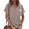 Womens T Shirts V Neck Button Down Tops Casual Summer Short Sleeve Tees Loose Fit Tops Blouses