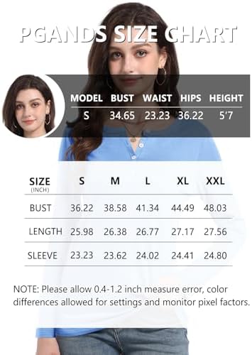 PGANDS Women's Long Sleeve Button Down T Shirts Scoop Neck Casual Tunic Tops
