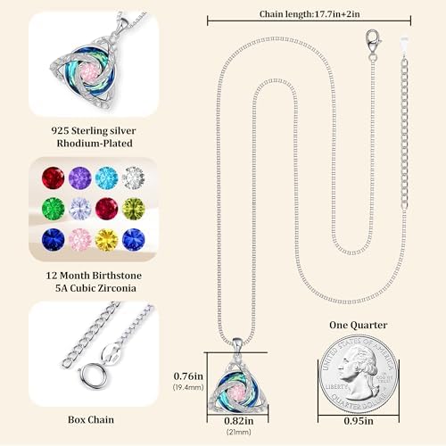 ?Family and Eternal Love: Trinity Knot represents family unity and eternal love. The knots are carved with the branches of the tree of life, which is a blessing for the health and longevity of the lover. ?Austria Crystal Necklace? All the crystals are from Austria. Platinum-coated circles with Austrian crystals sparkle like diamonds. You can enjoy dazzling sparkle and catch the viewer's eye with this celtic necklace. Fashion and Fine: Guided by professional jewelry designers, the celtic knot birthstone pendant is made of high-quality genuine 925 sterling silver inlaid with 5A cubic Zirconia gemstones. Nickel-free, lead-free and hypoallergenic, safe for the skin. ?Exquisite gift: The celtic necklace chain length 45cm + extension chain 5cm (17.7in+2in),weight:6.6g. Pendant: 21×19.4mm(0.82×0.76in). Easily matched with any outfit, a perfect gift for yourself or a woman you love. ♥Perfect Service♥Our company is committed to providing high-quality jewelry and the best customer service. If you are not satisfied, please feel free to contact us and we will try our best to help you. Search the Distance store on Amazon to see more of our designs!