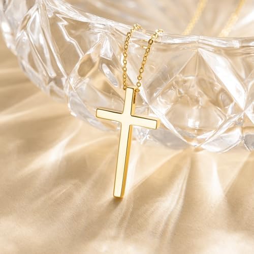 【Robust and Long-lasting】This dainty cross necklace for women gold is meticulously crafted from high-grade gold, renowned for its strength and resilience. Designed to withstand the rigors of everyday wear, our gold cross pendants for women ensure durability and reliability, making the gold cross chain an ideal accessory for people who values both style and substance. 【Gentle on the Skin】With a focus on comfort and wearability, this cross necklaces for womens cross necklace are finished with a smooth, hypoallergenic surface. The cross necklace for women is especially suited for those with sensitive skin, minimizing irritation and providing a pleasant wearing experience. 【Exquisite Detailing】The cross necklace gold plated necklace cross features a classic cross pendant that has been polished to a high sheen, significantly enhancing the visual appeal of cross jewelry women. This meticulous process results in a cross necklace that is more reflective and shiny, capturing light beautifully. 【Ideal Dimensions】The small cross necklace for women is lightweight, measuring 30mm*17mm. The gold plated cross pendant hangs from a 45+8cm cable chain that is ideal for versatile styling. Whether worn alone for a subtle statement or layered with other necklace for a personalized look, the gold cross chain offers endless styling possibilities. 【Present-Ready】Each cross necklaces for womens cross necklace is presented in a delicate jewelry box, ready to be gifted. This thoughtful presentation makes the cross necklace an excellent choice for gifting on various occasions for friends, parents, or significant others, this 14k gold cross necklace is a meaningful and stylish present that conveys thoughtfulness and appreciation.