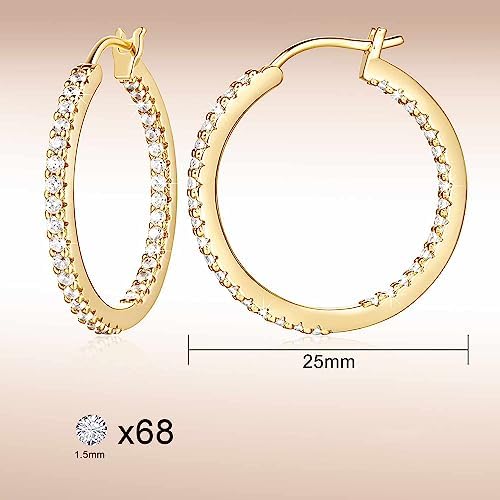 【14k Gold Diamond Hoop Earrings】Made with gold hoop earrings 14k gold, these gold hoop earrings for women offer an assurance of authenticity and luxury. Owning a pair of 14 karat gold hoop earrings means you’re investing in a timeless piece that will stay with you, shimmering for years to come. Owning a pair of these chunky hoop earrings is akin to possessing a fragment of timeless luxury, handcrafted to perfection and designed to last generations 【Two-sided Cubic Zirconia Dazzle 】With gleaming cubic zirconia gems gracing both sides of the gold small hoop earrings for women’s hoop earrings, they add an alluring dash of glitz. The elaborate detail of our 25mm 14k gold earrings for women promises a luminous effect, enhancing your inherent beauty 【Hypoallergenic Earrings】These thick gold plated hoop earrings with cubic zirconia are hypoallergenic, making them friendly for sensitive ears. No more worries about allergic reactions from the diamond earrings for sensitive ears hypoallergenic earrings for women; just timeless style and ultimate comfort 【How to Care】 Please store these chunky gold hoop earrings 14k gold рlаtеd, thick hoop earrings for women in a dry and cool space to maintain the best quality. If the gold chunky hoop earrings, large gold hoop earrings get wet that will leave dark spots which are difficult to remove 【Promises】We strive to pursuit top customer service. For further questions about our gold hoops earrings for women, 14k gold hoop earrings, please be free to tell us.
