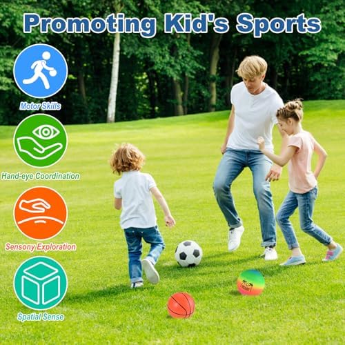 6 Pcs Outside Toys Balls for Toddlers 1-3 with Bag, Toddler Outdoor Sports Toys, Bouncy Balls Playground Beach Ball for Kids, Football Basketball Rugby Baseball Volleyball Soccer 1 2 3 4 5 Gift