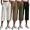 Soft and Stretchy Material: the women's capri yoga pants are made of 60% Polyester, 35% Cotton, 5% Spandex; The wide leg sweatpants material is soft, comfortable, stretchy, lightweight, breathable but not see through; Keep you cool and relaxed while you workout or exercise Wide Leg Capris and Elastic Waist: the women's lounge capri sweatpants feature wide leg, elastic waistband and pockets; The wide leg is not only modifying the lege curve, but offers a relaxed and comfortable fit; The elastic waistband fit all body types, ideal for everyday wear Easy to Match: the women's wide leg capris effortlessly blend simple, leisure and stylish, making them ideal as lounge pants or yoga sweatpants; You can match with shirts, tunic tops, casual tshirts and sneakers for a relaxed look Proper Fit: the stretchy fabric gives you maximum freedom, and there are 5 sizes to choose from; Please refer to the size chart before purchasing; If you prefer a "looser fitted", please order one size up than you normally wear Package Included: you will get 4 pack women's loose cropped pants, making them an appropriate choice for your daily casual wear; Suitable for yoga, pilates, gym, jogging, vacation, beach, sleeping, lounge around, office and relaxing at home