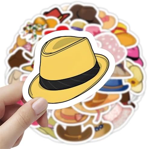Fashion Hat Stickers, 50PCs Cowboy Y2K Stickers for Laptop, Hydro Flask, Water Bottle, Vinyl Decals for Kids, Toddlers, Teens, Party Supply Deals as Gifts (Hats)