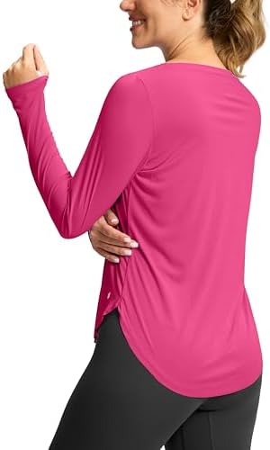 UPF50+ Sun Protection Clothing: Soothfeel womens sun shirts long sleeve offer UPF 50+ protection which protects your skin from the UVA/UVB rays. You can stay sun-protected and sweat-free at the same time. Lightweight, Quick Dry & Breathable Fabric: While you are hiking or workouts, the ultra-light and breathable fabric wicks moisture away from your skin, keeping you cool and dry, comfy and fresh through intense activities. And it won't weigh you down or trap heat, making it perfect for outdoor activities. High-Low Hem with Side Slits: High Side Slits make your legs look slender and allow unrestricted leg movement. Soothfeel long sleeve workout top with high low rounded hem design intended to cover your hip and provides extra room for movement. The slits on the side facilitate air circulation to help you stay cool. Thumbholes & Boat Neck: These long sleeve sun shirts with thumbholes provide extra sun protection for backs of hands and keep the sleeves in place during activities like hiking. The boat neck collar comes just above yoyr collar bone to prevent getting too much sun. Versatile Usage: Soothfeel women's long sleeve tee shirts are designed for outdoor sports. Perfect for Hiking, Workout, Running, Athletic, Fishing, Tennis, Gym, Walking, Casual, Travel, Camping, Pickleball or any of your favorite outdoor activities.