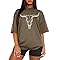 MAPICK Women Boho Cow Skull T-Shirts Western Cowgirls Graphic Crewneck Shirts Country Concert Short Sleeve Outfits