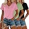 Elastic Soft Material: This t shirt made of 60% polyester, 35% rayon, and 5% spandex; This comfy fabric has a certain elasticity, is breathable, and is easy to wash and wear; Our comfortable rayon summer short sleeve tops for women offer a smooth feel against the skin, ensuring durability and skin friendly; Beautiful basic shirts for women in various colors can be added to your wardrobe for your everyday wear Design: Our women's Tshirt adopts a low neck and straight hem design. The depth of the low neck will not reveal too much cleavage, with a mature style. The straight hem whether it is exposed or tucked in, is all full of casual fashion Versatile Wardrobe T Shirt: whether you're dressing up for a casual day out or lounging at home, these cotton loose fit shirts for women can be effortlessly paired with jeans, skirts, or shorts for a stylish and comfortable ensemble; The simple style is suitable for most women and can be added to the wardrobe every season Loose Fit: You will receive 3 short sleeve shirts for women in different colors to match easily. Our 2025 trendy women's tops are designed with a fitted and slightly loose version, which highlights the natural body curves while bringing you comfort Easy to Care and Maintenance: machine washable for convenient care, these loose fit casual v neck tops for women retain their shape and color even after multiple washes, making them a practical and low maintenance addition to your summer wardrobe